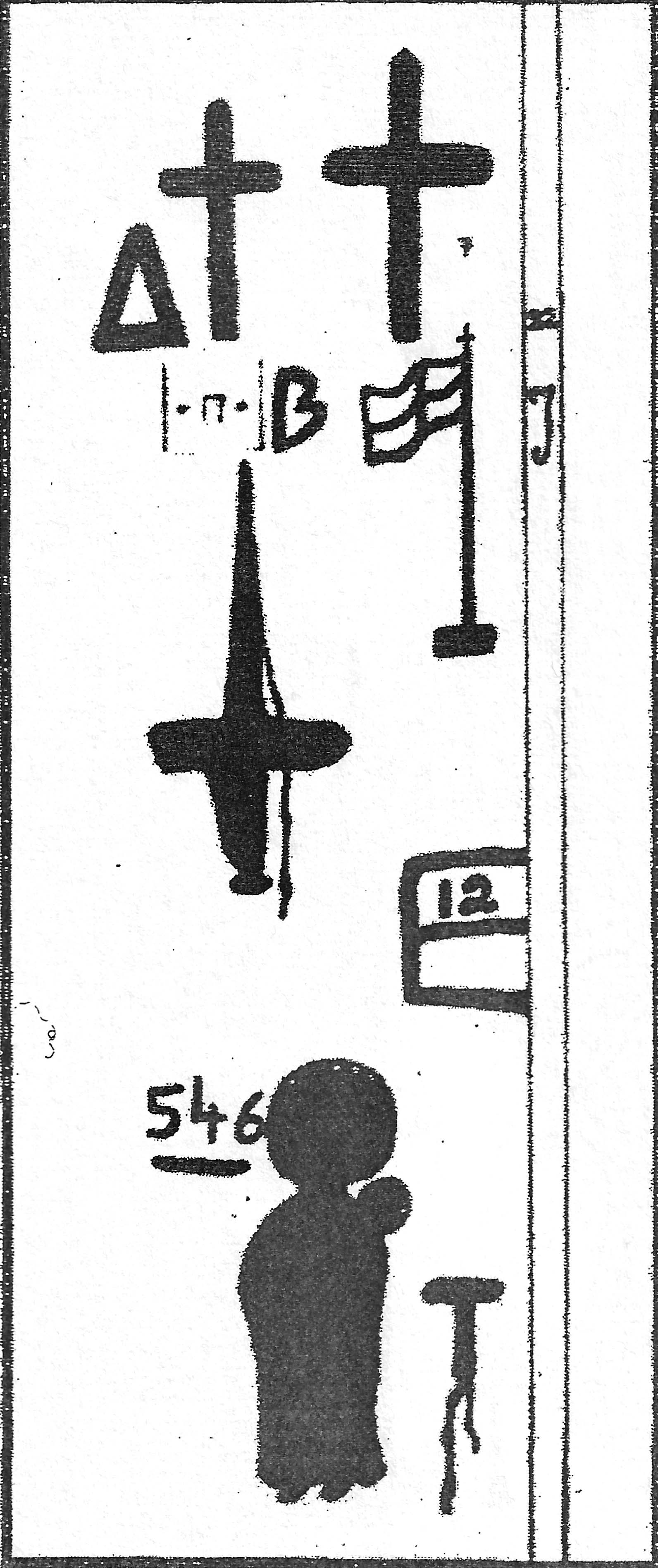 Ο αριθμός 546 δίπλα στο γράμμα Τ συμβολίζει το τέλος της Τουρκίας . Το ξίφος με το γράμμα ΄Π΄ και διπλά το γράμμα Β , συμβολίζει τον Μωάμεθ τον πορθητής των Β που κατέλαβε την Πόλη την Κωνσταντινούπολη , ο οποίος δημιούργησε την Οθωμανική αυτοκρατορία. Ο αριθμός 22 καταδεικνύει των αριθμό των γενεών που πρέπει να περιμένουν για να ελευθερωθεί η Πόλη , μία γενεά ισούται με 24 χρόνια.