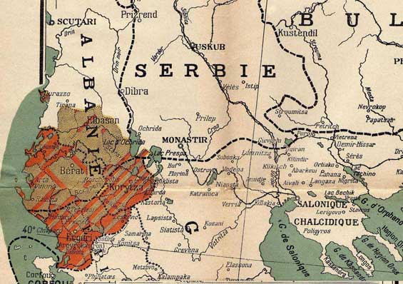 Με βάση τις αποφάσεις της Πρεσβευτικής Συνδιασκέψεως του Λονδίνου η Διεθνής Επιτροπή Καθορισμού των Συνόρων θα έπρεπε να αρχίσει τις εργασίες για τη χάραξη των ορίων της Αλβανίας την 1η Σεπτεμβρίου 1913. Μόλις όμως στις 4 Οκτωβρίου κατόρθωσε να συνέλθει στην πρώτη της εναρκτήρια συνεδρίαση στο Μοναστήρι. Πριν αρχίσει τις εργασίες της η Επιτροπή, οι Μεγάλες Δυνάμεις της γνωστοποίησαν την απόφαση τους να παραχωρηθεί η Κορυτσά (που είχε απελευθερωθεί από τον Ελληνικό Στρατό στις 7/10/1912) στην Αλβανία, ενώ παράλληλα προειδοποίησαν την Ελλάδα να μην φέρει προσκόμματα στην απόφαση τους αυτή.