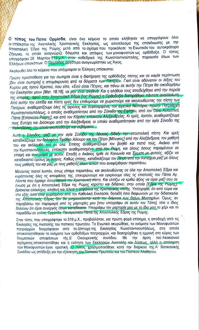 Η παπική εκκλησία με δύο συνόδους 484 και 485 αφώρισε και καθαίρεσε αυτόν λόγω του «ΕΝΩΤΙΚΟΥ» . Ο Ακάκιος σε εφαρμογή του 28Ο κανόνα της τετάρτης Οικουμενικής της Χαλκηδόνας έπαυσε το μνημόσυνο του Πάπα . Την 28 Μαρτίου του 519 , υπεγράφη από τους ανατολικούς επισκόπους – άνευ συνόδου – ο τύπος του Πάπα Ορμίσδα (φωτ, 1) , διεγράφη από τα δίπτυχα ο Πατριάρχης Κων/λεος Ακάκιος και ανεκηρύχθη Άγιος ο Πάπας Ορμίσδας σε ευθεία παράβαση του 28Ο κανόνα που προβλέπει την χωρική αρμοδιότητα των πατριαρχείων ¨ ο Πάπας επεκύρωσε τον 28Ο κανόνα το 1215 στην σύνοδο του Λατερανού , αφού είχε καταλάβει και την Κων/πολη .