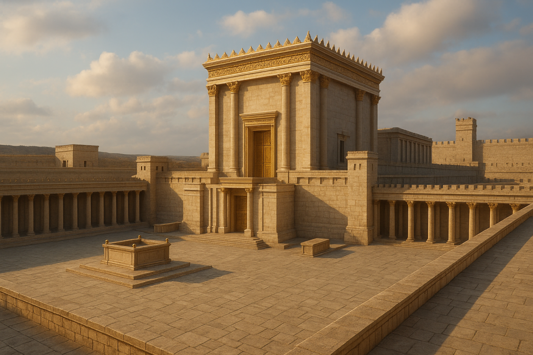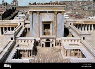 Γ) Ο Ναός του Ηρώδη του Μέγα , ήταν τεραστίων διαστάσεων οικοδόμημα , εγκιβώτιζε περιμετρικά τον κατεστραμμένο Ναό του Ζοροβάβελ , το μέγεθος των δύο προηγούμενων ναών , ήταν το διπλάσιο της σκηνής του Μαρτυρίου . Ο Ναός αποπερατώθη – κατά τους Ευαγγελιστές – μετά 46 χρόνια , το έτος 26 μχ περίπου . στον Ναό του Ηρώδη κήρυξε ο Κύριος και εκδίωξε τους εμπόρους – αργυραμοιβούς .